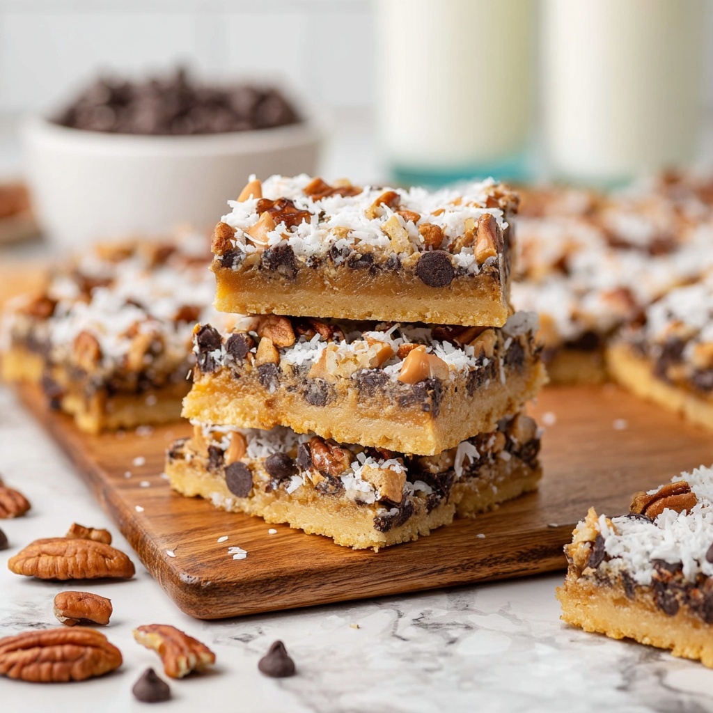Store any leftover 7 Layer Bars in an airtight container at room temperature for up to three days, or in the refrigerator if you prefer them chilled. Keeping them sealed preserves the moist, chewy texture without the layers drying out.