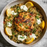For a fun twist, serve the chicken and rice in individual ramekins or small baking dishes for a personalized presentation. Alternatively, plate it family-style with lemon wedges on the side to let everyone add a burst of citrus to their liking.