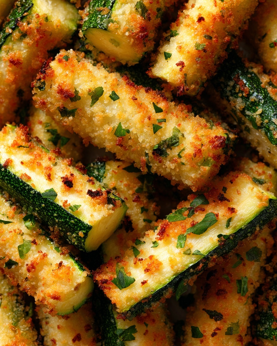 Take each zucchini stick and dip it first into the flour, ensuring it’s lightly covered. Next, dunk it into the egg mixture, letting any excess drip off. Finally, press it gently into the breadcrumb mixture to coat it thoroughly. This triple-layer coating is what makes these fries irresistibly crispy and flavorful.