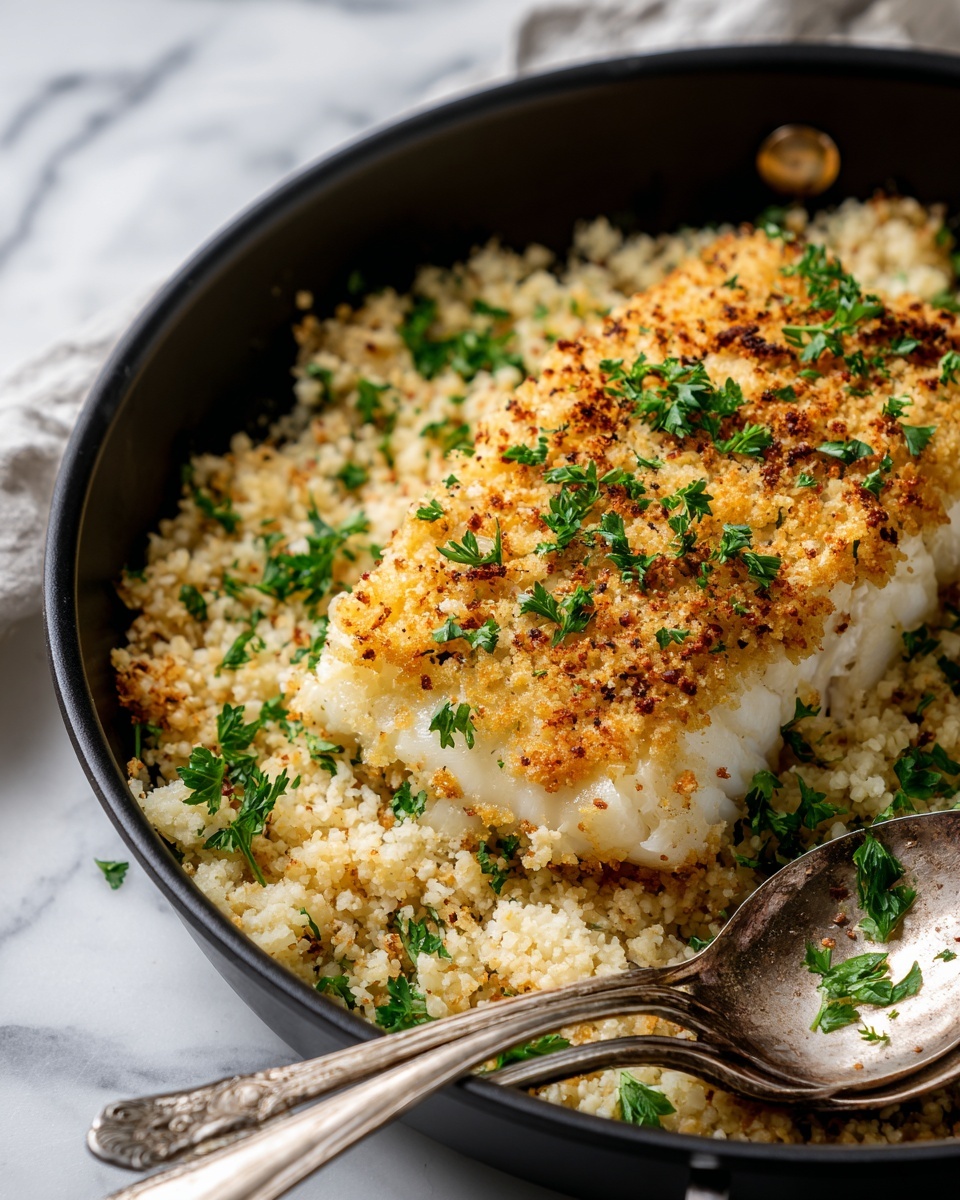 Once baked, let the chicken rest for about 5 minutes to allow the juices to redistribute. Then sprinkle generously with freshly chopped parsley before serving, adding a fresh, vibrant touch and a pop of color.