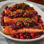 This Baked Salmon with Cranberry Salsa and Pecans is a vibrant and festive main course perfect for any occasion. Tender salmon fillets are oven-baked to perfection, then topped with a zesty and slightly sweet cranberry salsa, adding a fresh contrast. Toasted pecans add a delightful crunch, making this dish both flavorful and nutritious. Easy to prepare and ideal for holiday meals or weeknight dinners.