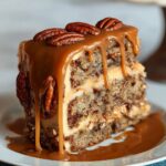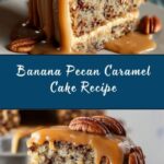This Banana Pecan Caramel Cake is a moist and flavorful dessert featuring ripe bananas and crunchy pecans, topped with a luscious caramel sauce. Perfect for gatherings or a special treat, it combines the rich sweetness of caramel with the hearty texture of pecans and banana in a tender, buttery cake.