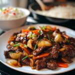 Serve your beef and onion stir fry piping hot over fluffy steamed rice or your favorite noodles for a hearty, satisfying meal. The combination of tender meat, savory sauce, and crisp veggies ensures each bite is bursting with flavor.