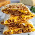 - Serve: Remove the quesadillas from the griddle, slice into wedges, and serve hot. Add optional toppings like shredded lettuce, tomatoes, or burger sauce for a fully loaded cheeseburger flavor.