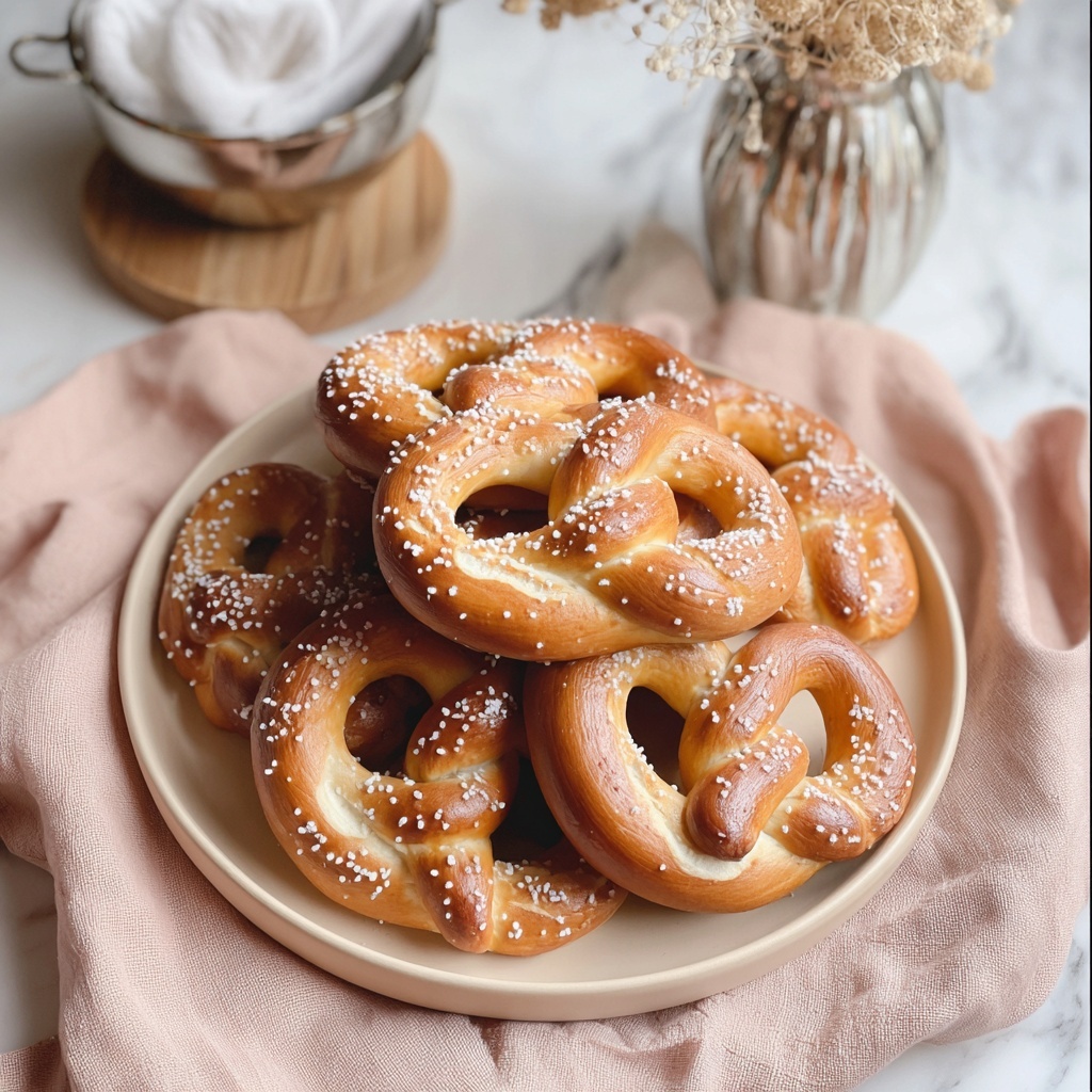 For gatherings or fun family nights, present your pretzels in a rustic basket lined with linen, accompanied by small bowls of assorted dipping sauces. Another idea is to cut them into bite-sized pieces to serve as party snacks or use them as the base for soft pretzel sandwiches.