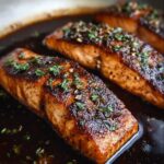 - Garnish and Serve: Transfer the salmon to a platter. Drizzle any remaining sauce over the fillets. Sprinkle with fresh parsley and optional black sesame seeds. Serve immediately with lemon wedges for a zesty finish.