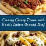 Cheesy Penne with Garlic Butter Ground Beef is a hearty and flavorful pasta dish that combines tender penne with a rich, creamy garlic butter sauce and savory ground beef. Perfect for a quick weeknight dinner, this recipe delivers comfort and indulgence in every bite with melted mozzarella and Parmesan cheese creating a luscious texture.