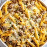 Cheesy Penne with Garlic Butter Ground Beef is a hearty and flavorful pasta dish that combines tender penne with a rich, creamy garlic butter sauce and savory ground beef. Perfect for a quick weeknight dinner, this recipe delivers comfort and indulgence in every bite with melted mozzarella and Parmesan cheese creating a luscious texture.
