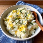 To reheat, warm the leftover cheese rice gently on the stove over low heat or in the microwave. Stir in a splash of milk if it feels dry to restore its creamy consistency. Heat slowly and stir regularly to prevent curdling or sticking.