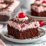 This Cherry Dr. Pepper Cake is a delightful chocolate dessert combining the sweet flavors of Dr. Pepper soda, maraschino cherries, and rich chocolate frosting topped with chocolate shavings. Perfectly moist and topped with a creamy cherry-infused frosting, it’s a crowd-pleaser that’s simple to prepare and bake in under an hour.