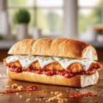 This Chicken Parmesan Sub recipe features tender breaded chicken breasts topped with marinara sauce, melted fresh mozzarella, and grated Parmesan cheese, all baked to perfection and served in sub rolls with fresh basil for a flavorful Italian-inspired sandwich.