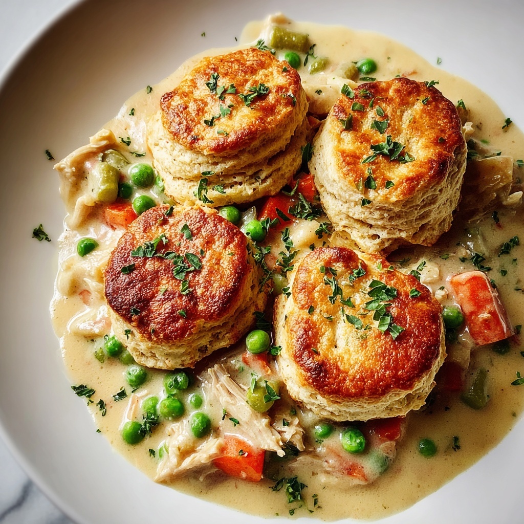 This comforting Chicken Pot Pie with Biscuits combines tender chicken, hearty vegetables, and a creamy sauce topped with golden, flaky refrigerated biscuits. Perfect for a cozy family dinner, this easy one-dish meal delivers classic flavors and satisfying textures in under an hour.