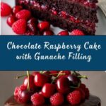 - Decorate and chill: Decorate the cake with fresh raspberries and chocolate shavings as desired. Chill the cake in the refrigerator for at least 1 hour to set the ganache before slicing and serving.