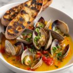 For a charming rustic presentation, serve the clams and broth in wide, shallow bowls with lemon wedges on the side. Alternatively, plate the clams atop toasted crostini or alongside grilled polenta rounds. Garnish with edible flowers or a drizzle of chili oil for an elegant twist that impresses your guests with both flavor and style.