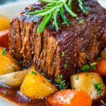 This Classic Sunday Pot Roast recipe features a tender, flavorful chuck roast braised with hearty vegetables and fresh herbs. Slow-cooked to perfection in the oven, the roast becomes fork-tender and infused with rich, savory flavors, making it the ultimate comforting main course for family dinners.