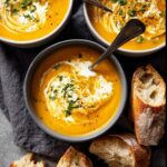 To make the soup vegan, simply replace the unsalted butter with olive oil and swap the thickened cream for coconut cream or a cashew cream alternative. The warming spices and root vegetables will still shine beautifully.