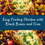 This Cowboy Chicken recipe is a hearty, flavorful dish featuring tender chicken breasts seasoned with a smoky spice blend, seared to perfection, and baked with a savory mixture of corn, black beans, and fire-roasted tomatoes. Topped with melted Mexican blend cheese and fresh cilantro, it’s a complete meal perfect for a family dinner or gathering.
