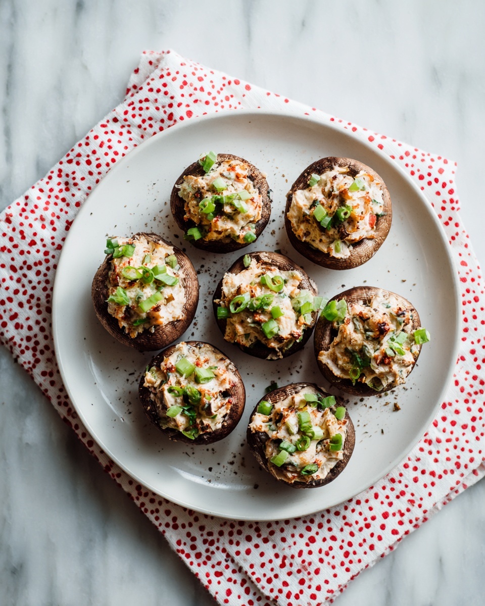 Absolutely! While white mushrooms are traditional and hold the filling well, cremini or baby portobellos also work nicely, offering a slightly earthier flavor and firmer texture.