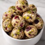These Cranberry Pistachio Energy Bites are a wholesome, no-bake snack packed with the natural sweetness of dried cranberries, the crunch of pistachios, and the rich creaminess of peanut butter. Perfect for a quick energy boost, they combine wholesome ingredients like rolled oats, chia seeds, and honey or maple syrup for a nutritious and delicious treat that is easy to prepare and ideal for on-the-go snacking.
