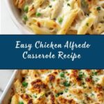 A creamy and comforting Chicken Alfredo Casserole featuring tender chicken, perfectly cooked pasta, and a rich Alfredo sauce, baked to golden, cheesy perfection. This easy-to-make dish combines classic Italian flavors into a hearty casserole ideal for weeknight dinners or family gatherings.