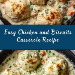 This comforting Chicken and Biscuits recipe combines a creamy, savory chicken and vegetable filling with fluffy, golden biscuits baked on top. Perfect for a hearty family meal, the filling is made with sautéed onions, carrots, celery, chicken broth, and tender chicken pieces, while the biscuits are made from Bisquick and cheese for a deliciously flaky topping.