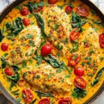 This Creamy Chicken Coconut Curry with Tomatoes and Spinach Recipe has genuinely become one of my favorite go-to dishes for bringing warmth, comfort, and vibrant flavor into any day. It’s surprisingly simple to prepare, uses familiar ingredients, and delivers an impressive depth of taste that feels special without being complicated. I can’t wait for you to try it yourself and make it a beloved staple in your cooking repertoire!