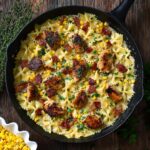 - Assemble the Dish: Add the cooked and drained pasta to the creamy corn sauce and stir to combine. Return the cooked chicken pieces to the skillet and mix gently. Transfer the pasta mixture to serving plates or a large dish. Sprinkle the top with chopped cooked bacon, the reserved corn kernels, and garnish with fresh herbs like thyme, oregano, or marjoram for a fragrant finish.