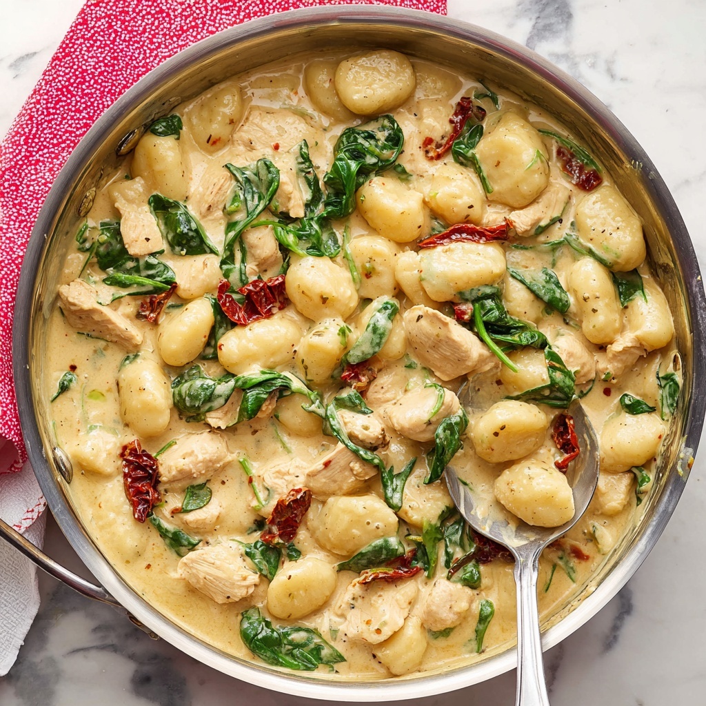 For special occasions or a fun dinner twist, serve the creamy chicken and gnocchi in individual shallow bowls, garnished artistically with microgreens or a drizzle of extra virgin olive oil. You can also pile the gnocchi and chicken atop a bed of pasta or creamy polenta for an indulgent variation that impresses without extra fuss.