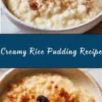 This creamy rice pudding recipe is a comforting and classic American dessert made by simmering tender rice in milk and sugar until thick and luscious. Enhanced with vanilla, a touch of cinnamon and nutmeg, and optionally enriched with butter and dried fruits, it offers a warm, nostalgic treat that’s perfect served warm or chilled.
