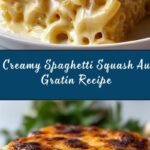 A rich and comforting Creamy Spaghetti Squash Au Gratin recipe featuring tender roasted spaghetti squash strands folded into a luscious cheese and cream sauce, topped with golden Parmesan and optional breadcrumbs, perfect as a hearty vegetarian main or a flavorful side dish.