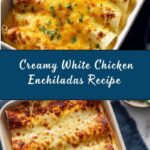 Creamy White Chicken Enchiladas are a comforting Mexican-inspired dish featuring tender shredded chicken and a blend of cheeses rolled in soft flour tortillas, smothered in a rich, creamy white sauce made from butter, flour, chicken broth, sour cream, and green chiles. Baked to perfection until bubbly and golden, these enchiladas offer a luscious flavor and a satisfying texture, perfect for a family dinner or casual gathering.