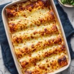 Creamy White Chicken Enchiladas are a comforting Mexican-inspired dish featuring tender shredded chicken and a blend of cheeses rolled in soft flour tortillas, smothered in a rich, creamy white sauce made from butter, flour, chicken broth, sour cream, and green chiles. Baked to perfection until bubbly and golden, these enchiladas offer a luscious flavor and a satisfying texture, perfect for a family dinner or casual gathering.