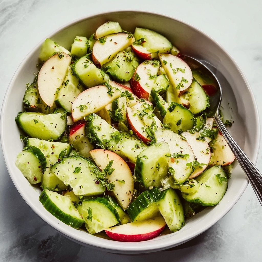 The beauty of this salad lies in its simplicity and the way each ingredient plays a star role. Fresh cucumbers bring a cool crunch, apples add sweetness and tang, and the dressing ties everything together with a perfect balance of tart and sweet that wakes up your taste buds.
