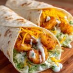 This Crispy Chicken Ranch Snack Wrap combines crunchy breaded chicken tenders with fresh shredded lettuce, sharp cheddar cheese, and creamy ranch dressing, all wrapped in a warm, soft flour tortilla. Perfect as a quick and satisfying snack or light meal, it offers a delicious balance of crispy and creamy textures with classic comforting flavors.
