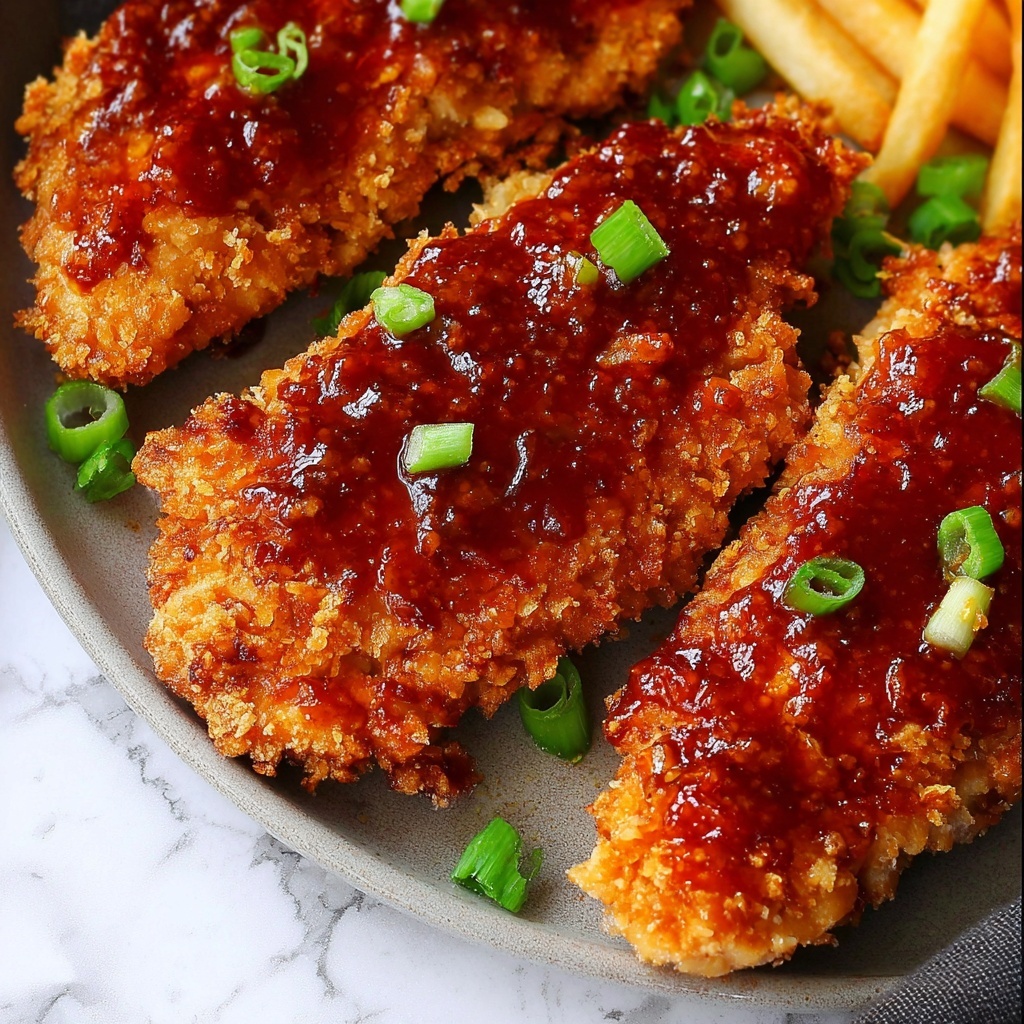 These Crispy Honey Butter Chicken Tenders are a delightful combination of crunchy, golden fried chicken strips coated in a luscious honey butter glaze. Marinated in buttermilk and a blend of spices, then double-dredged in a seasoned flour mixture and fried to perfection, they offer an irresistible crispy texture and sweet, buttery flavor perfect for an easy yet indulgent dinner.