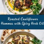 To bring it all together, spread store-bought hummus generously onto a platter or shallow bowl. Layer the crispy roasted cauliflower on top, then drizzle the vibrant herb-infused garlic oil over everything. The richness of the hummus paired with the spicy, herbaceous cauliflower will excite your taste buds with every bite. Serve it up with warm naan or crunchy pita chips for the perfect textural contrast and an irresistible dipping experience.