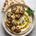 This Crispy Roasted Cauliflower Hummus recipe features tender, smoky roasted cauliflower florets seasoned with a blend of spices, served atop creamy store-bought hummus and drizzled with a fragrant, spicy garlic herb oil. Perfect as a flavorful appetizer or snack, it’s paired wonderfully with fresh naan or pita chips for dipping.