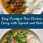 This Crockpot Thai Chicken Curry is a flavorful and easy-to-make slow-cooker recipe featuring tender chicken thighs simmered in a rich Thai red curry sauce with kabocha squash, kale, and creamy coconut milk. Perfect for a comforting weeknight dinner, this curry balances the spicy, sweet, and savory elements traditional to Thai cuisine and pairs wonderfully with rice or quinoa.