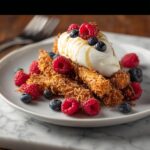 Serving your Crunchy Nut French Toast Recipe with the perfect garnishes makes all the difference. Drizzle with warm maple syrup for classic sweetness, sprinkle fresh berries on top for a bright, juicy contrast, or dust with powdered sugar for an elegant touch. Whipped cream adds a luscious, creamy balance to the crunchy texture.