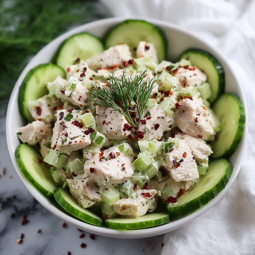 This refreshing and easy-to-make Cucumber Tuna Salad combines the light crunch of fresh cucumber with the savory flavor of tuna, enhanced by a blend of mayonnaise, Dijon mustard, and dill. Perfect for a quick lunch or a healthy snack, this salad is ready in just 10 minutes and serves two.