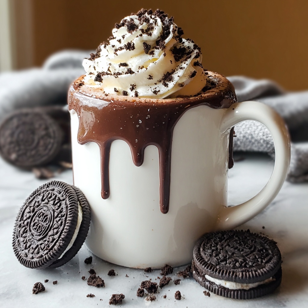 - Add Toppings: Top each mug with whipped cream, drizzle chocolate syrup over the whipped cream, and garnish with a whole Oreo cookie for a delightful presentation.