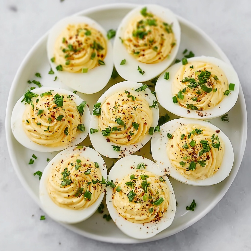 Presentation is half the fun! Use a colorful serving platter or arrange the eggs on a bed of leafy greens or edible flowers for an elegant touch. For a party, try deviled egg “boats” with thin slices of cucumber or bell peppers beneath each half. This recipe invites you to get creative and wow your guests visually as well as gastronomically.