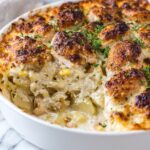 Dolly’s Chicken and Stuffing Casserole is a comforting Southern American dish featuring tender shredded chicken blended with creamy soups and sour cream, topped with buttery seasoned stuffing. This easy-to-make casserole is perfect for potlucks, holidays, or cozy weeknight dinners, delivering warm, homestyle flavors that feel like a comforting hug.