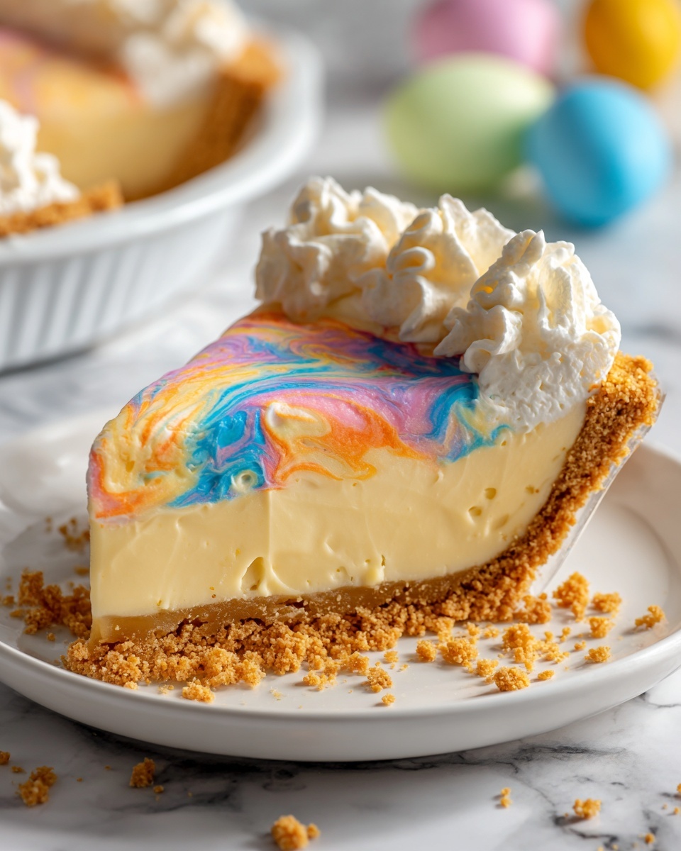 When it’s time to enjoy, slice your Easter Swirl Pie and consider topping each piece with an extra dollop of whipped topping. Add festive pastel sprinkles or tiny candy eggs on top for that charming Easter touch that will delight both kids and adults alike. This pie is not only delicious but a real conversation starter because of its stunning presentation.
