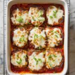 This Easy Eggplant Lasagna is a delicious and low-carb alternative to traditional pasta lasagna. Featuring roasted eggplant slices layered with marinara sauce, creamy ricotta mixed with Italian seasoning and egg, mozzarella, and Parmesan cheese, it offers a rich and savory Italian dish perfect for vegetarians and those seeking gluten-free options. The preparation involves roasting the eggplants to reduce moisture, then baking the assembled layers until bubbly and golden.