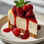 - Serve: Before serving, optionally top the cheesecake with fresh raspberries and an additional drizzle of raspberry sauce for extra freshness and visual appeal.