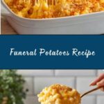 Funeral Potatoes is a comforting and creamy hash brown casserole featuring a savory blend of cream of chicken soup, sour cream, cheddar cheese, and a crispy cornflake topping. Perfect for gatherings and potlucks, this casserole delivers a rich, cheesy flavor with crunchy texture, baked to golden perfection.