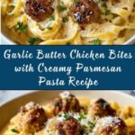 This Garlic Butter Chicken Bites with Creamy Parmesan Pasta recipe combines succulent bite-sized chicken cooked in garlic butter with a rich, creamy Parmesan sauce tossed with perfectly al dente fettuccine or linguine. Ready in just 30 minutes, it’s a satisfying and comforting meal perfect for any weeknight dinner.