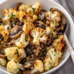 A flavorful and easy-to-make Garlic Cauliflower and Mushrooms recipe that combines roasted cauliflower florets and sautéed mushrooms with fragrant garlic, olive oil, and a touch of red pepper flakes. Perfect as a healthy side dish or a light main course, garnished with fresh parsley and optional Parmesan cheese.