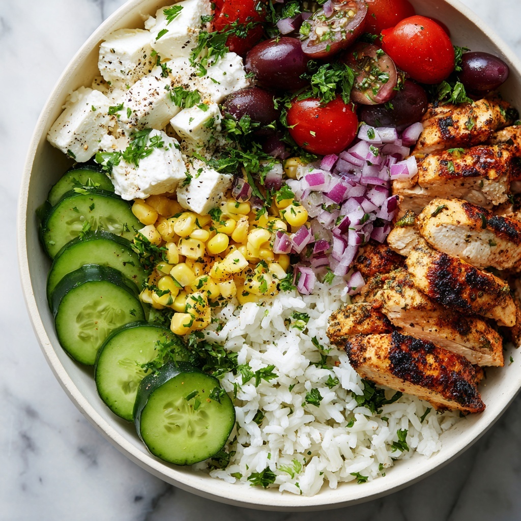 To elevate your Greek Chicken Bowls Recipe, consider adding a sprinkle of crumbled feta cheese or a handful of fresh chopped parsley or dill. These garnishes amplify the flavors and add a lovely brightness that balances the richness of grilled chicken and creamy tzatziki.